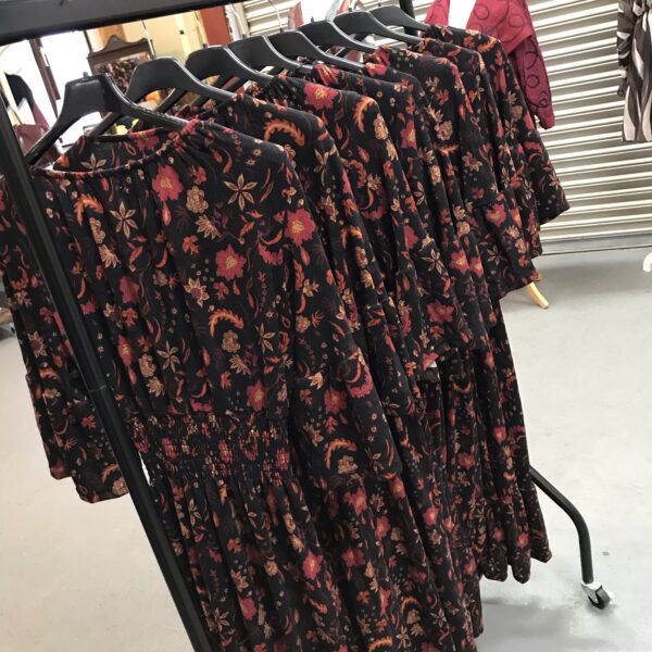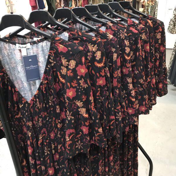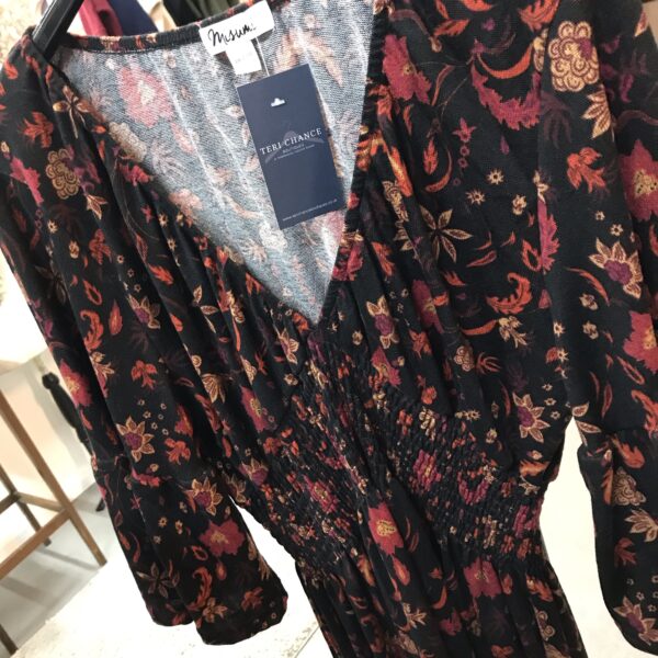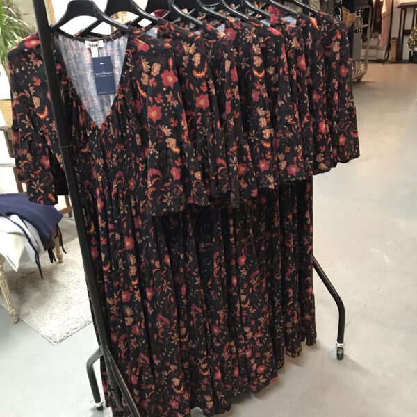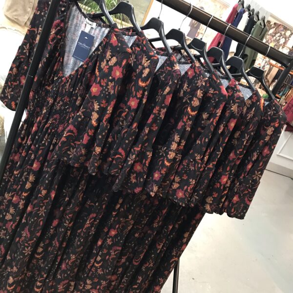 Our ever popular and flattering shirred waist dress has been reimagined for the winter season in a super soft mid weight fabric with a gorgeous autumnal print.