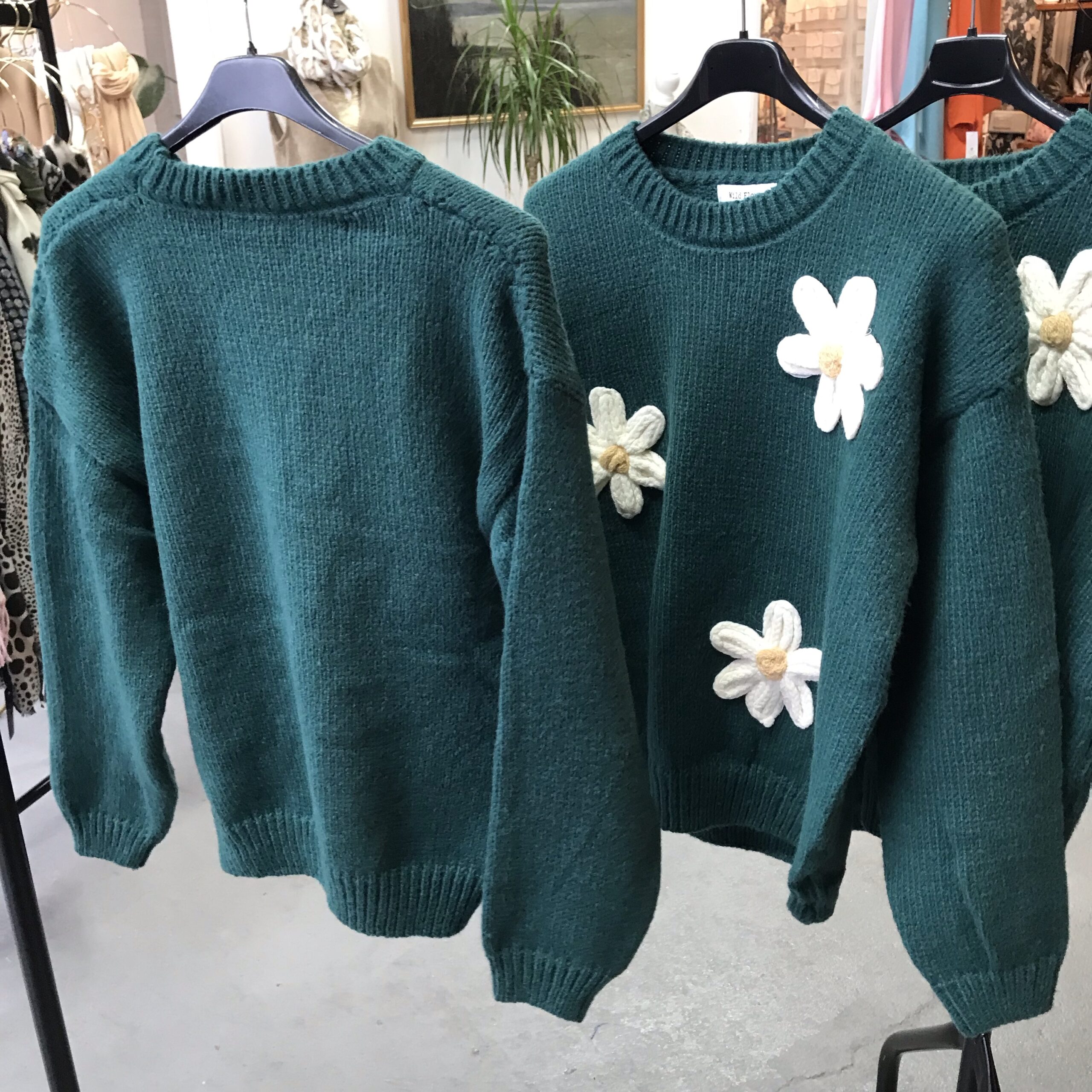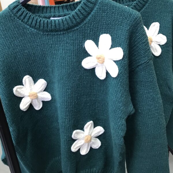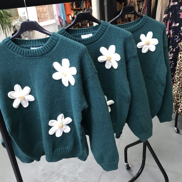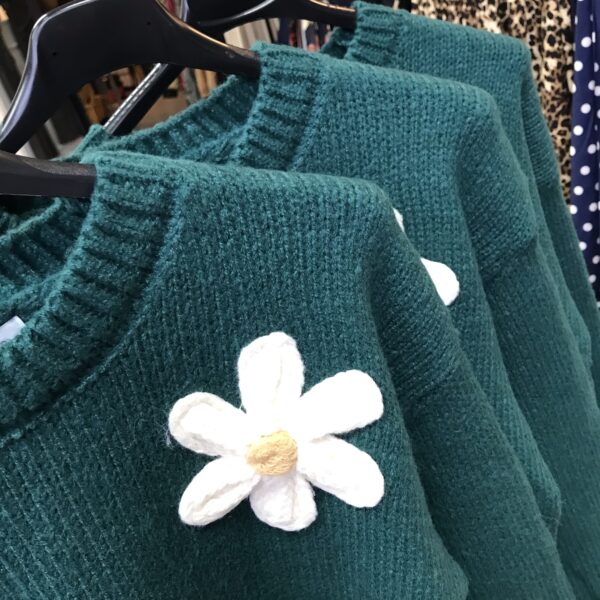A snuggly jumper version of our popular flower cardigan in the same gorgeous knit.
