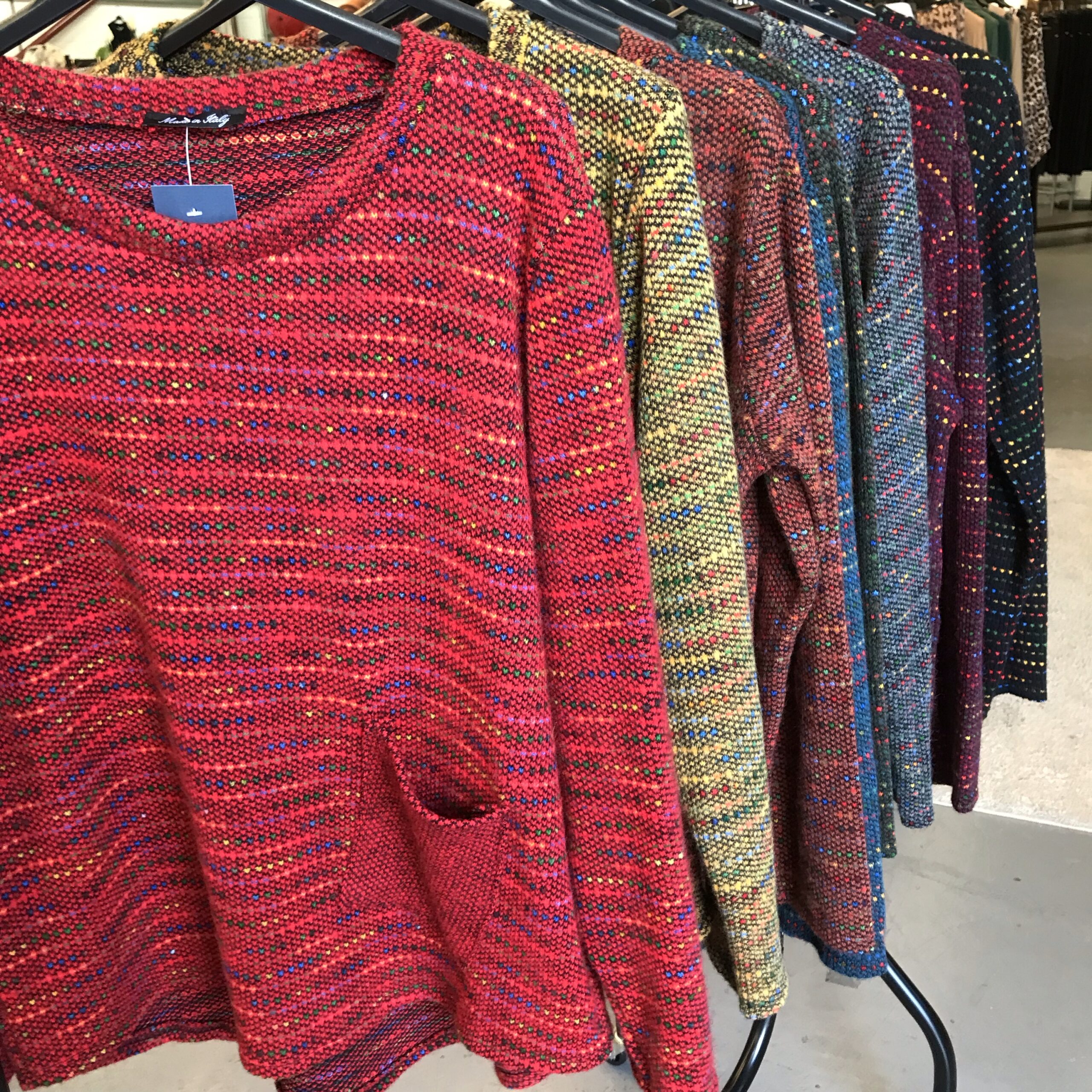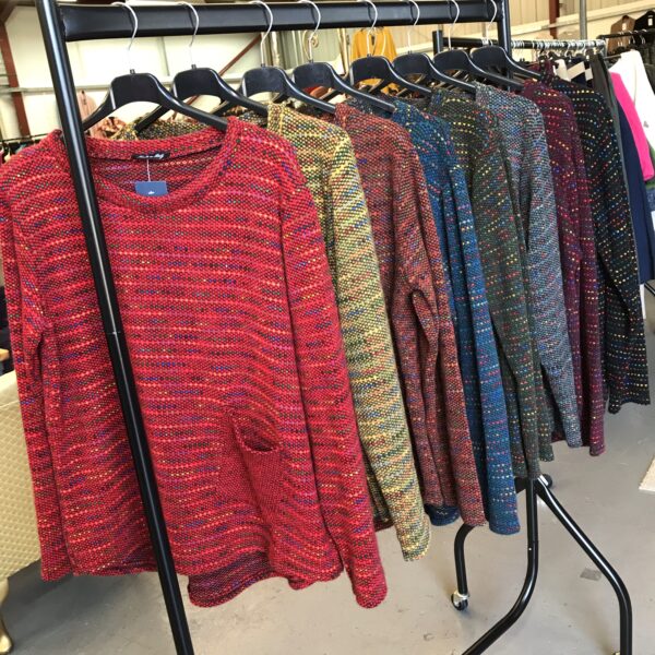 £20.00 Colour Choose an optionBeigeBurgandyBlackKhakiRedNavyGreyRustMustardTealDenimClear Fleck Pocket Top quantity Add to cart SKU: N/A Category: Clothing Description Additional information Description One Size to 16 Front Pocket Detail Acrylic/Elastic Mix Additional information Colour Beige, Burgandy, Black, Khaki, Red, Navy, Grey, Rust, Mustard, Teal, Denim Related products Asymmetric Jumper £30.00 Select options This product has multiple variants. The options may be chosen on the product page Fleck Top £20.00 Select options This product has multiple variants. The options may be chosen on the product page Daisy Chain Jumper £30.00 Select options This product has multiple variants. The options may be chosen on the product page Smart Jogger £18.00 Select options This product has multiple variants. The options may be chosen on the product page