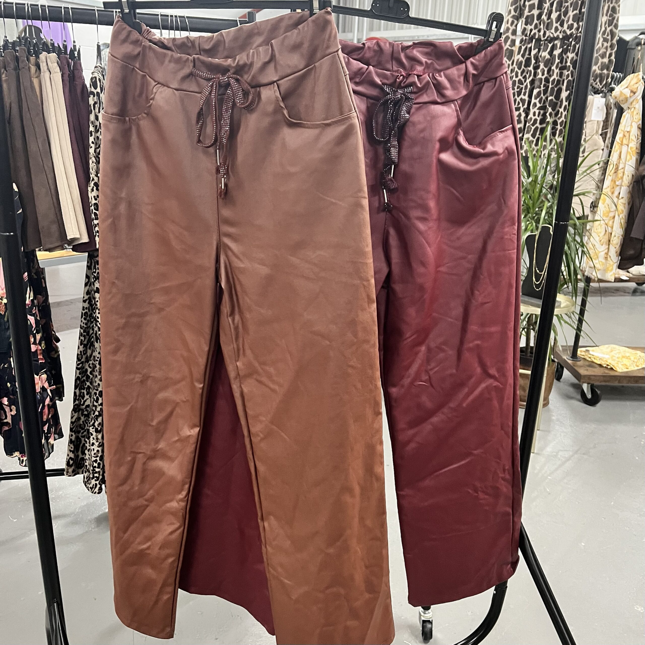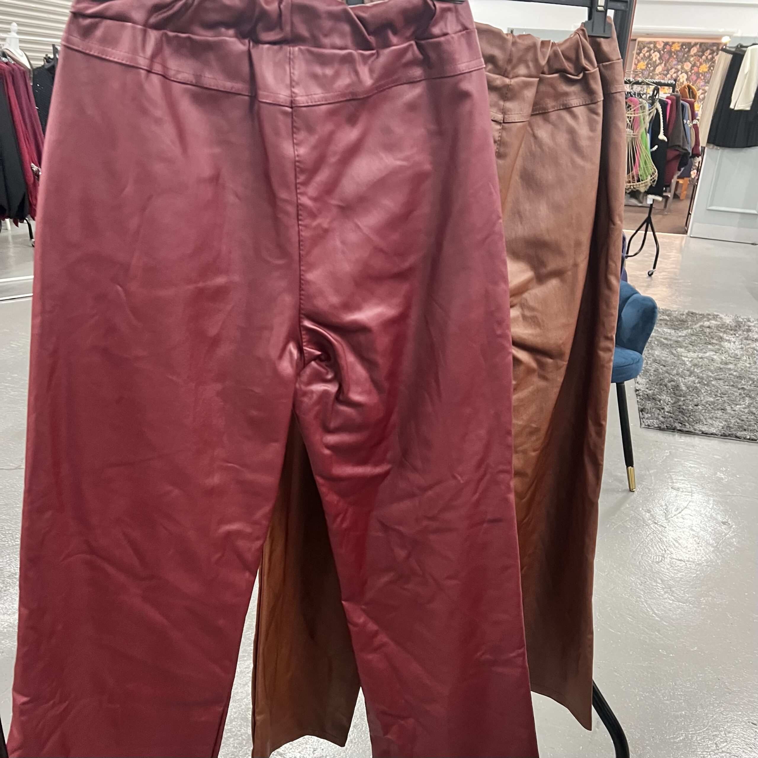 £28.00 Colour Choose an optionRedBrownClear PU Wide Leg Trousers quantity Add to cart SKU: N/A Category: Clothing Description Additional information Description One Size to 16 Elasticated Waist 77% viscose 20% nylon 3 Elastane Additional information Colour Red, Brown Related products Basic V Neck Jumper £28.00 Select options This product has multiple variants. The options may be chosen on the product page Batwing Rib Jumper £28.00 Select options This product has multiple variants. The options may be chosen on the product page Fleck Pocket Top £20.00 Select options This product has multiple variants. The options may be chosen on the product page Smart Pull On Trousers £18.00 Select options This product has multiple variants. The options may be chosen on the product page