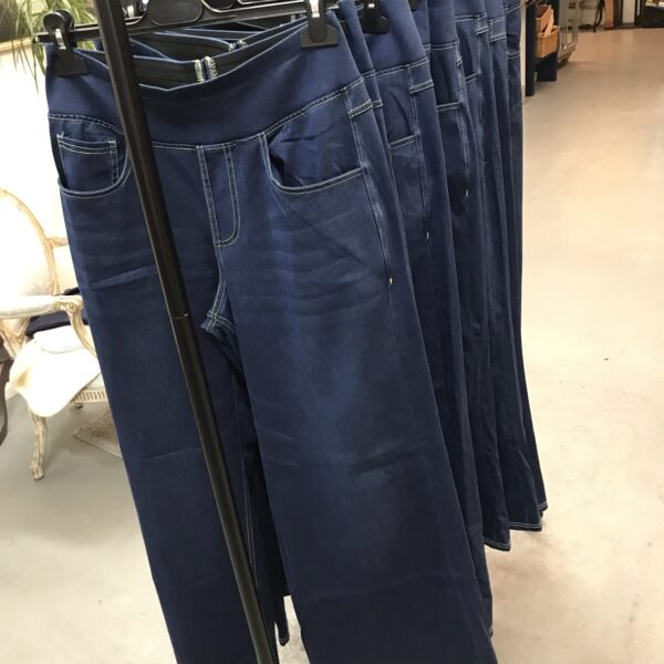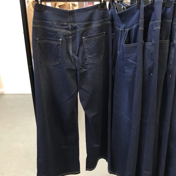 Pull on style with a deep elasticated waistband and a wide leg ensures a flattering fit in a smart indigo blue.
