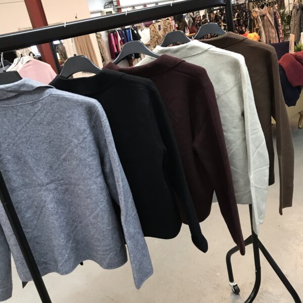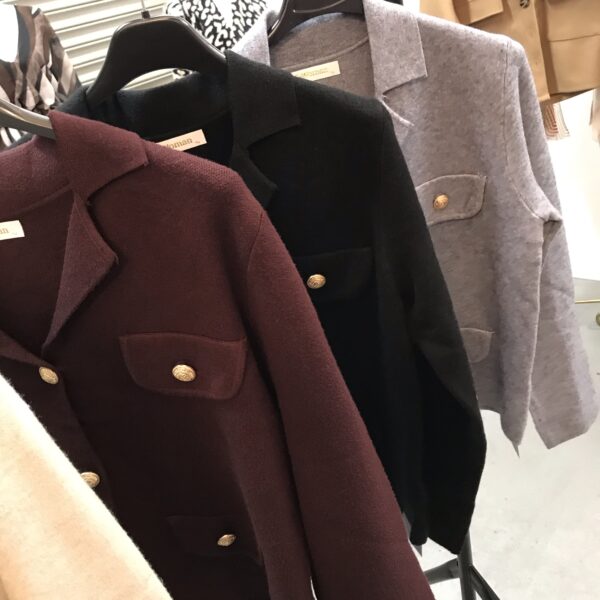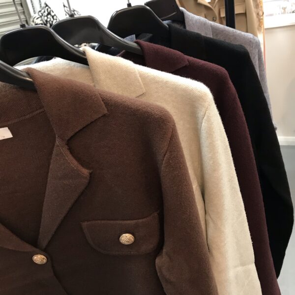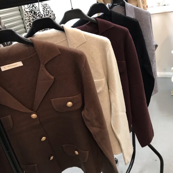It’s a mid weight knit with gold button detail and can be worn buttoned up as a top or open for a more casual look.