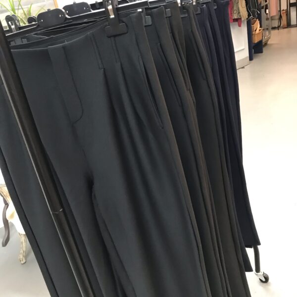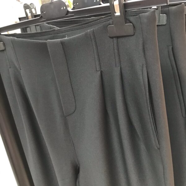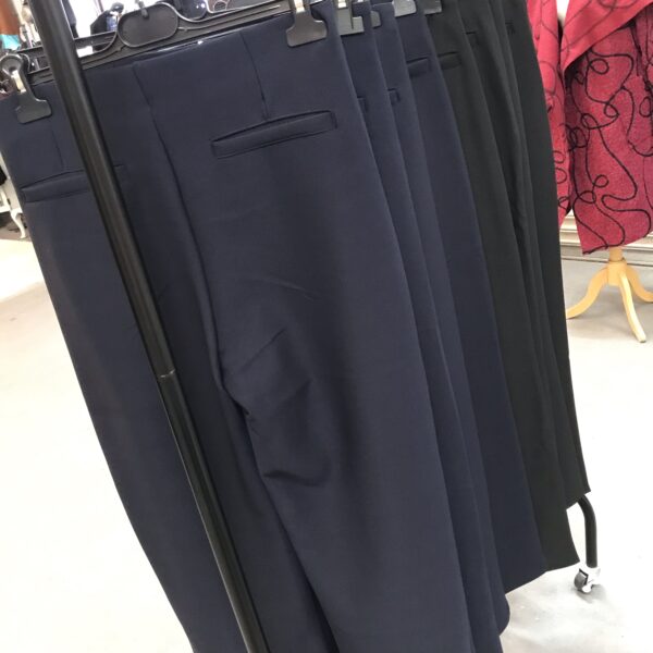 These trousers are super smart and super comfy as they’re a pull on style featuring a faux zip front and front pleats.