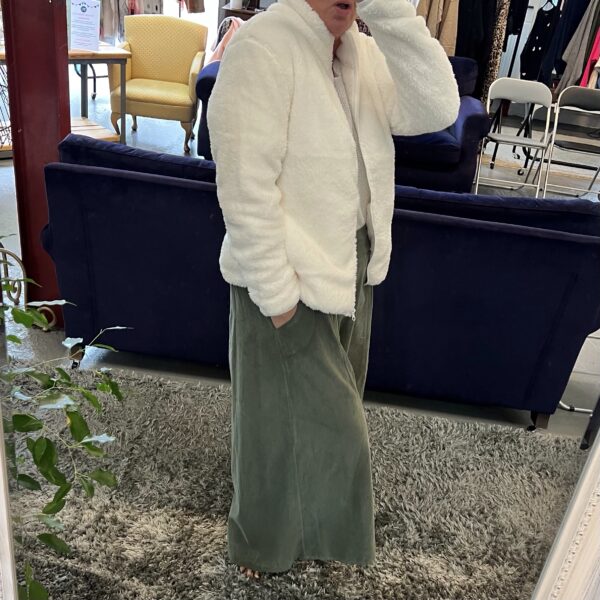 We absolutely adore this fluffy jacket from Stella Morgan in a classic cream. It’s super snuggly and warm and will definitely be our “go to” when the temperature drops in the boutique!